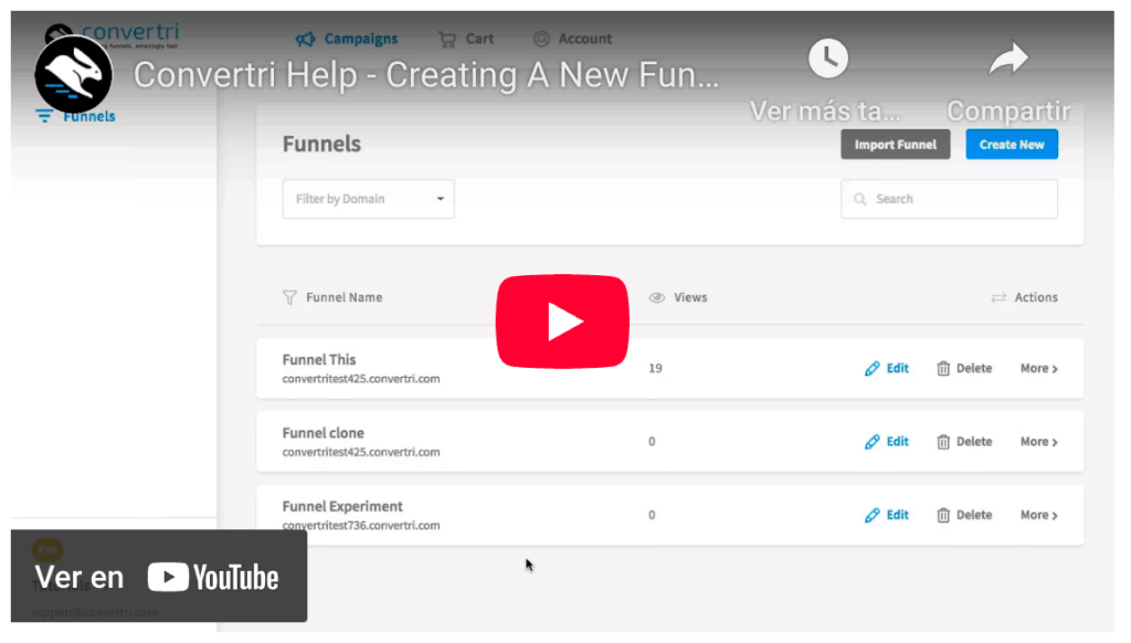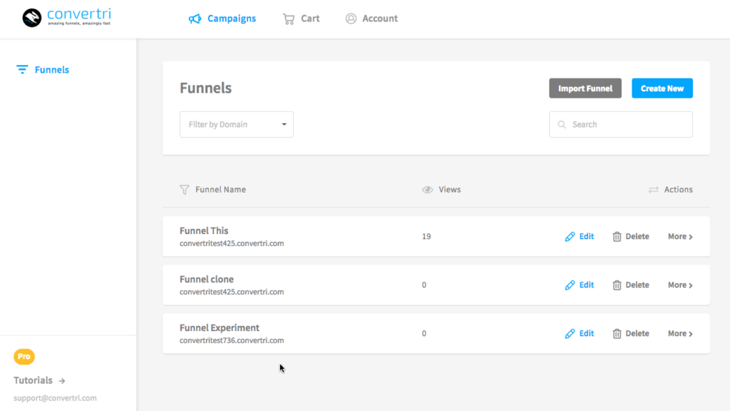 • Click “create new” or “import funnel” to start.