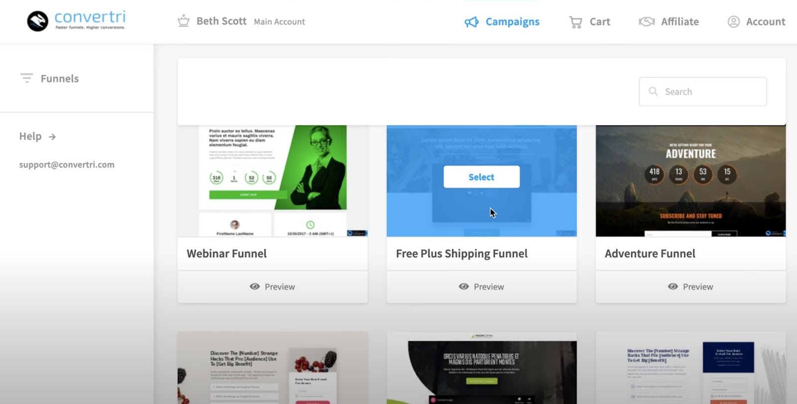 If you also want to design your own funnel, you can absolutely build it from the ground up. Upon creating a new funnel in Convertri, you will be immediately directed to the templates screen. Total creative freedom, with all the power of Convertri behind it.