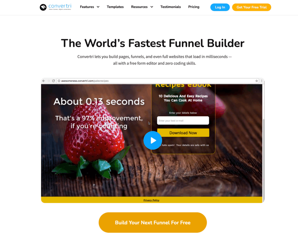 Start your free trial with Convertri and see what a faster funnel does for your numbers.