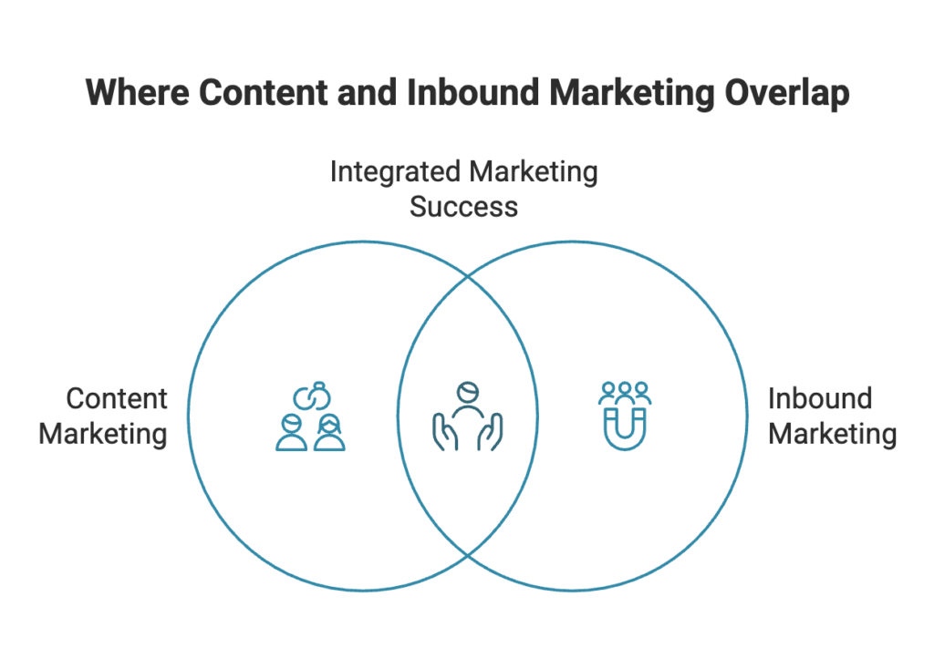 Key takeaway: Content marketing fuels inbound marketing. You can’t do inbound effectively without consistent, high-quality content, but content alone doesn’t guarantee conversions—it needs the inbound framework to guide prospects through the funnel.