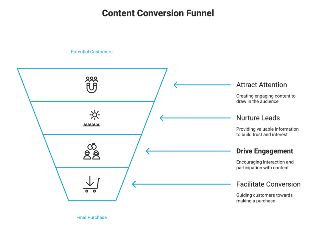 - Conversion: Targeted content guides leads through decision-making toward purchase.