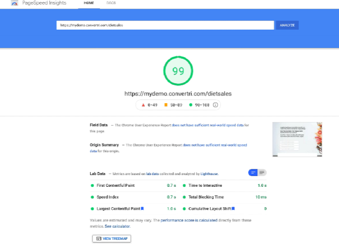 However, if you push Convertri’s mobile pages through a speed test, you’ll often see near-perfect Core Web Vitals scores thanks to the separate design and lean code.
