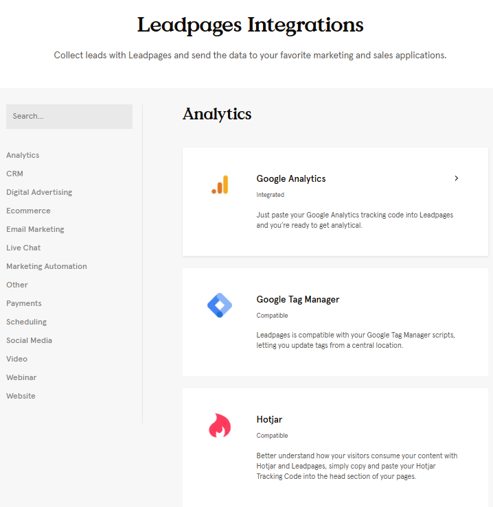 Leadpages similarly integrates with most tools (Mailchimp, HubSpot, Salesforce, etc.) and even offers lead nurturing features.