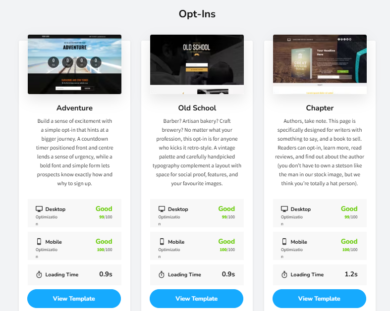 For example, the Opt-Ins Adventure template loads in ~0.9s. Convertri’s templates are also fully customizable, giving you a head start on creating marketing pages.