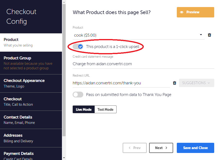 - one-click upsells