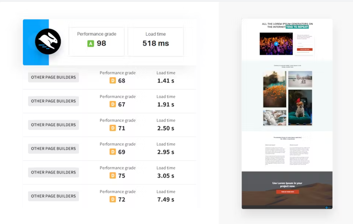 - Fastest loading responsive landing pages