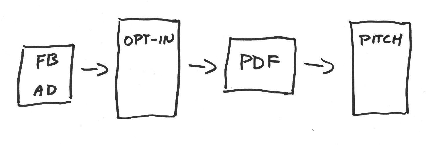 The lead comes in from Facebook, downloads a lead magnet, and clicks on a link within it to be taken to the second half of the sale.