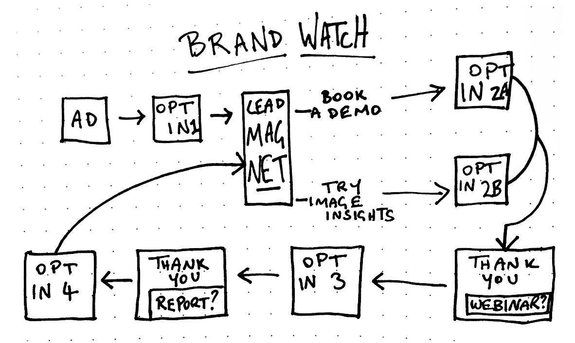 Their end goal is to get people to schedule a free demo of their services, obviously with the aim of getting them on a plan. Here’s an adorable doodle of the funnel: