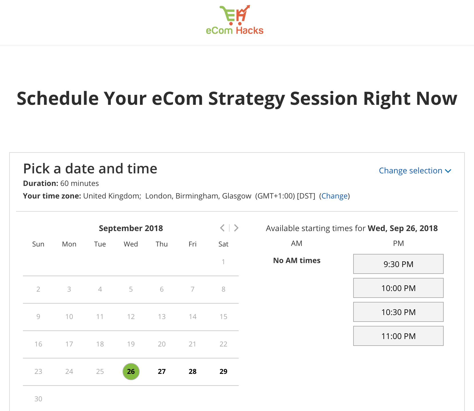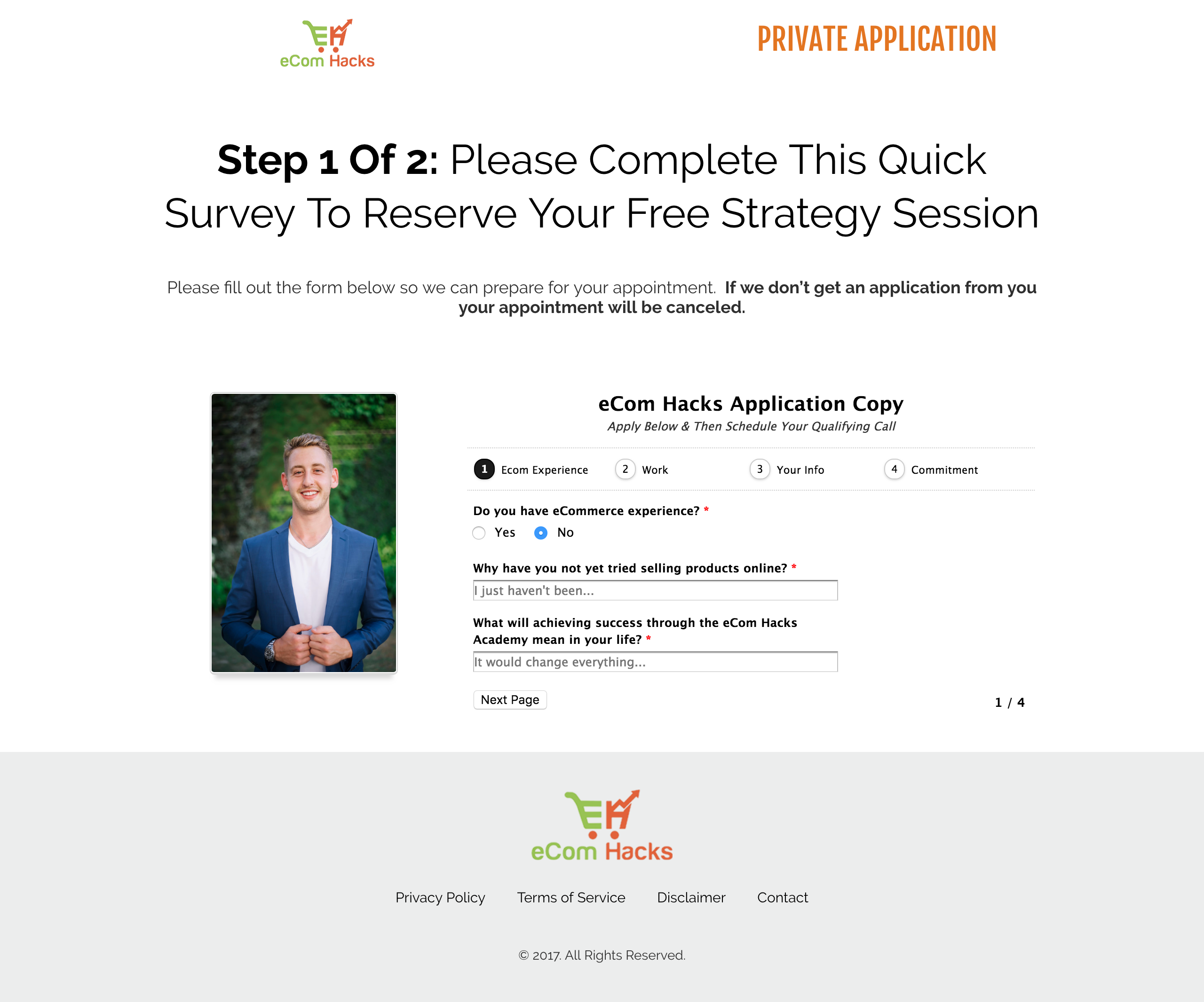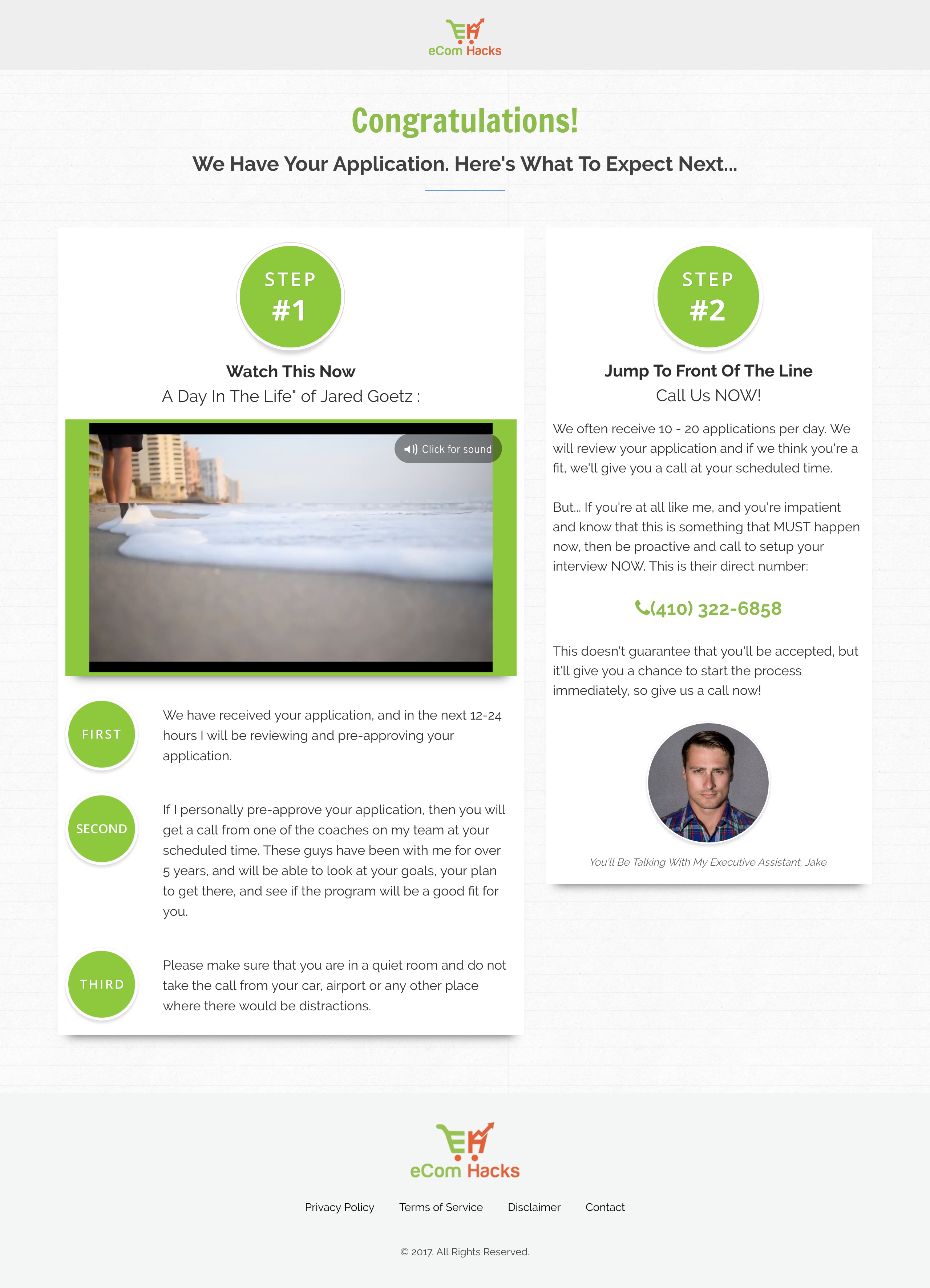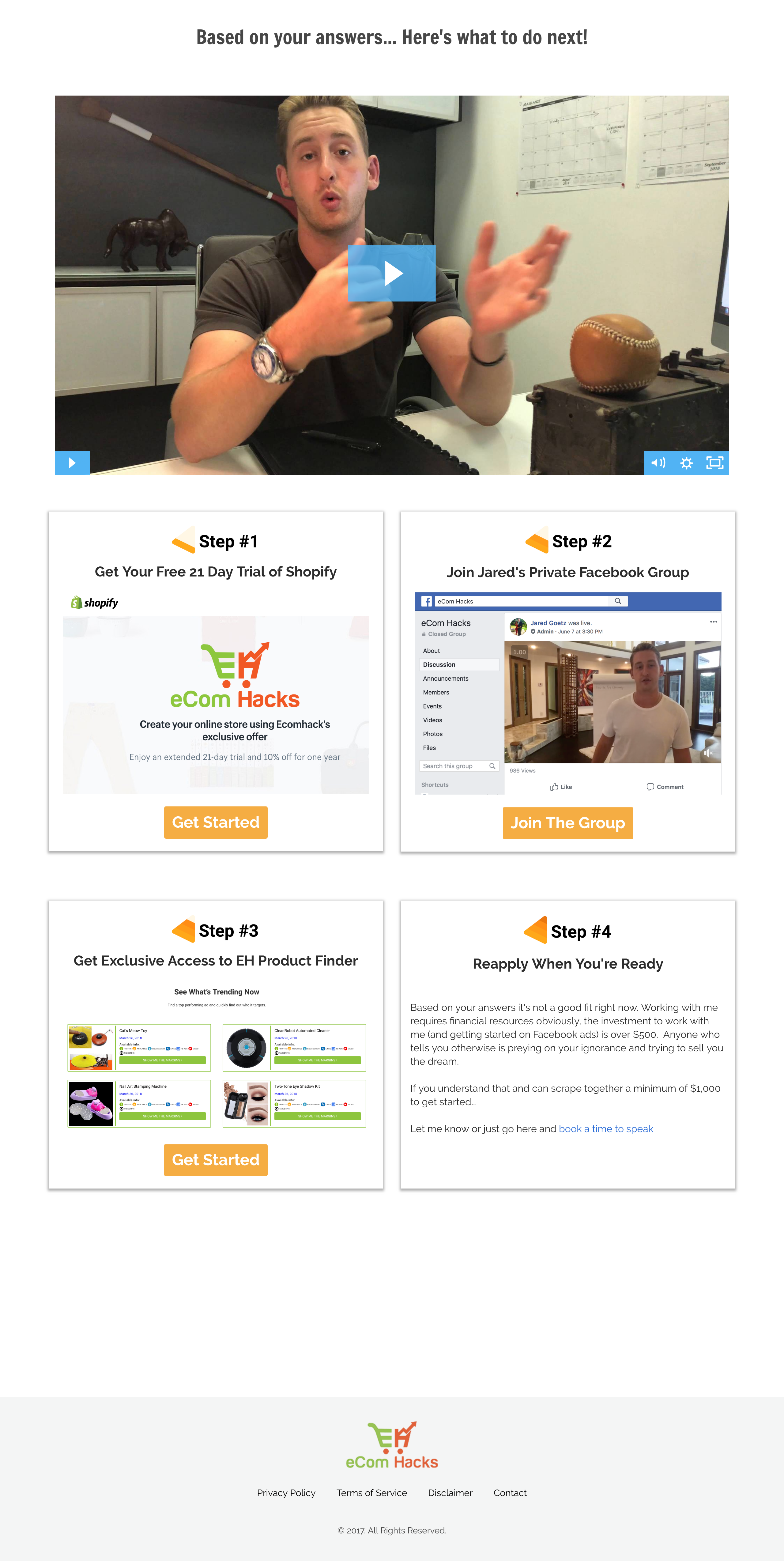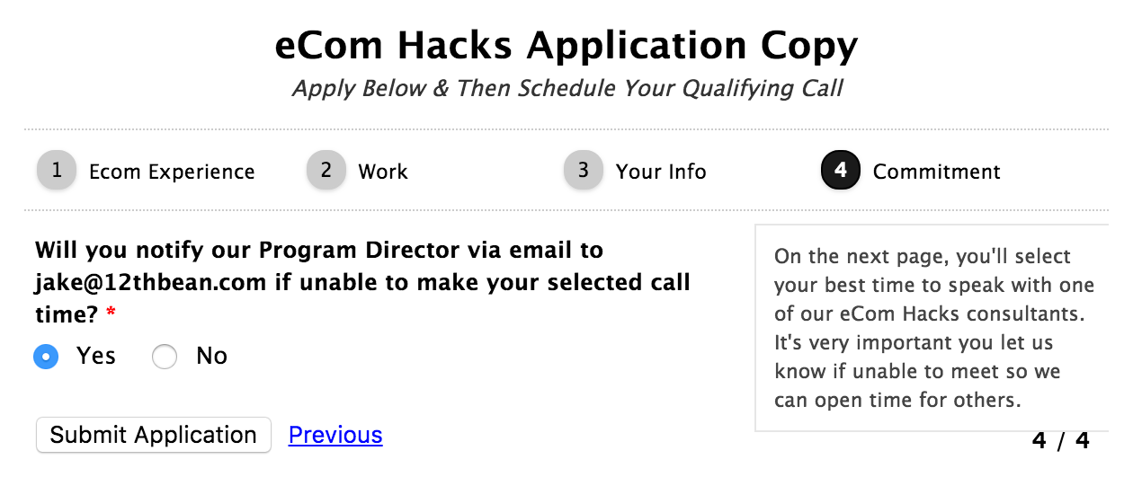 It’s here I want to note that the only answer your success depends upon is the amount you’re willing to invest in the eCom Hacks Academy. Changing that option was the only difference between failure and success. I even clicked that I refused to tell the Program Director if I wasn’t able to take the call – I was still redirected to this page.