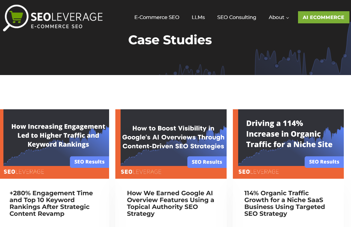 - Example: SEOLeverage’s case study pages