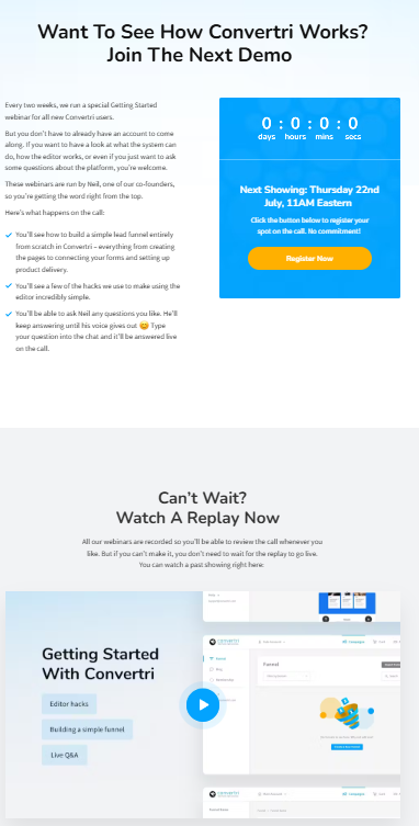 - Example: Convertri demo webinar page