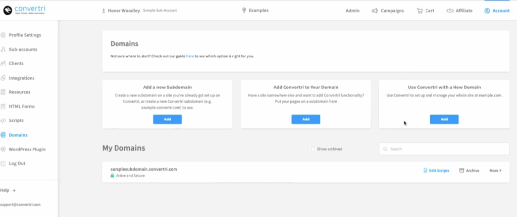 - You can white-label Convertri for client funnels using sub-accounts and custom domains.