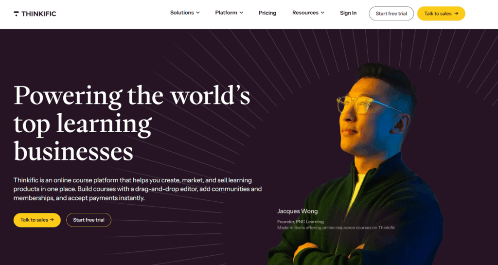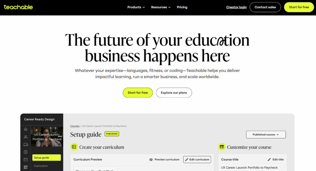 Teachable is a focused course-creation platform with a simple, fast setup. They work best for solo educators and creators who want to launch their first course.