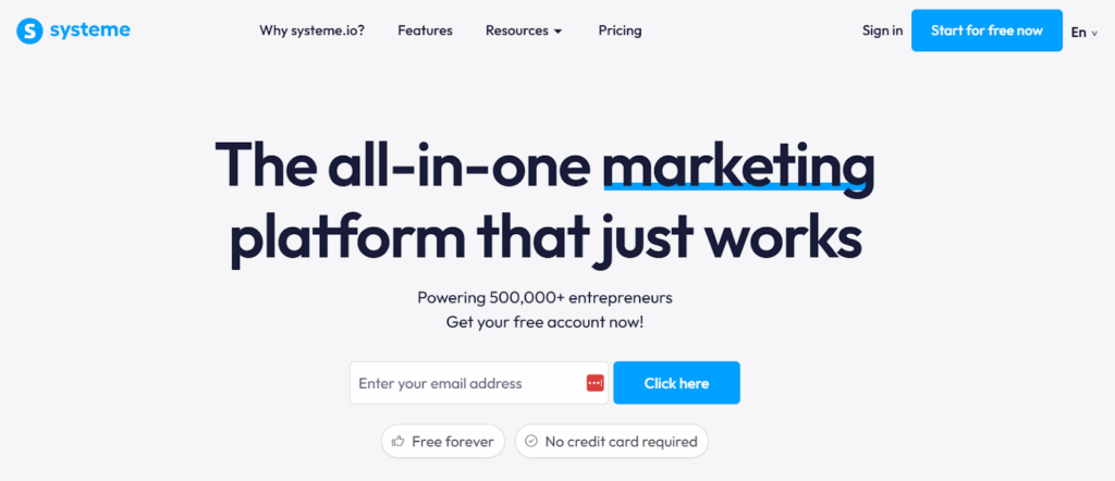 - Unlimited Plan: Get this for $97 per month to get unlimited funnels, courses, emails, and custom domains, and early access to any of Systeme.io’s new features.