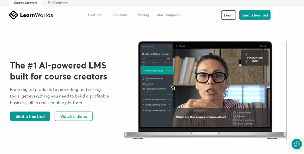 This platform balances structured learning delivery and flexibility, especially for professional instructors and structured course schools. It helps you host unlimited students with its strong course creation features and certification tools.