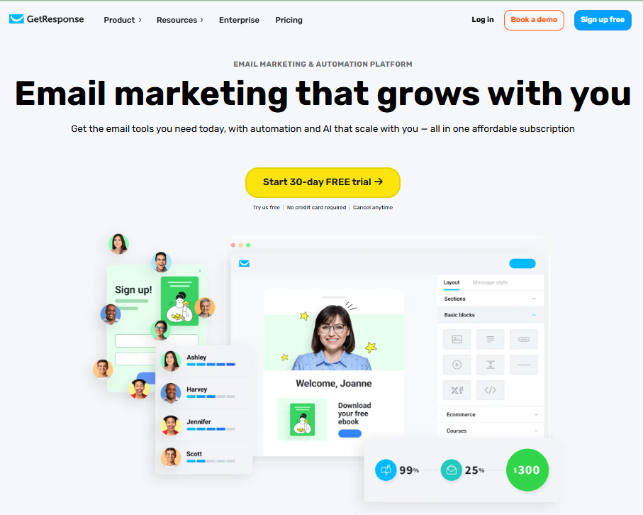 While GetResponse’s page builder isn’t as flashy as some specialized tools, it covers the essentials with ease. It’s ideal if you want a single platform for email campaigns and landing pages, especially as a digital marketer or small business looking to save money.