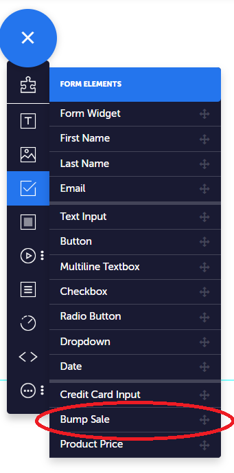 - In the Page Builder, drag the Bump Sale checkbox onto your page.