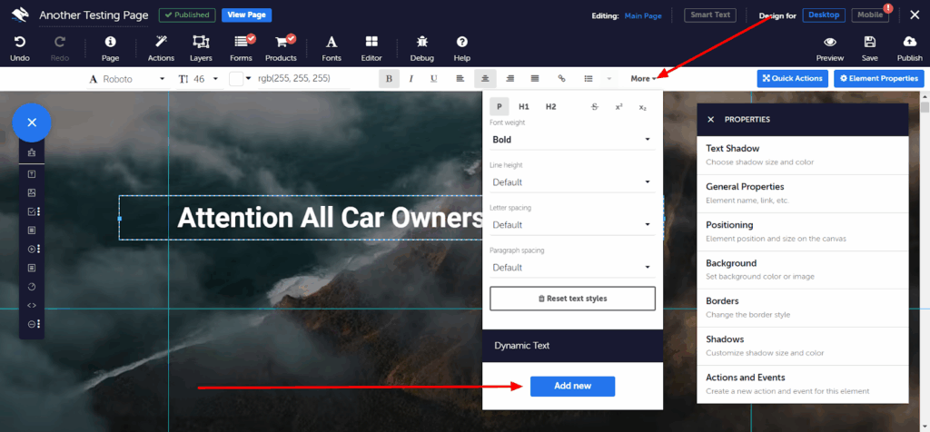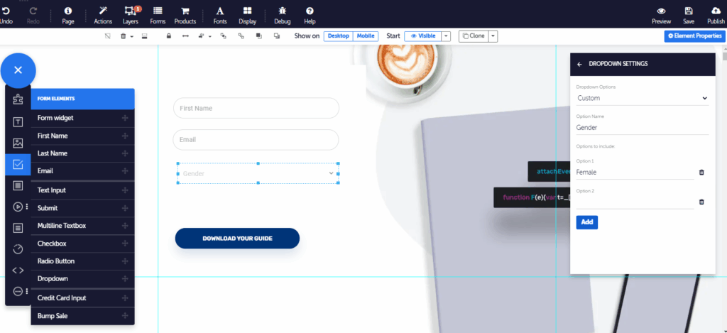 Free-Form Drag & Drop. Move any element anywhere on the page. No coding or fixed layouts.