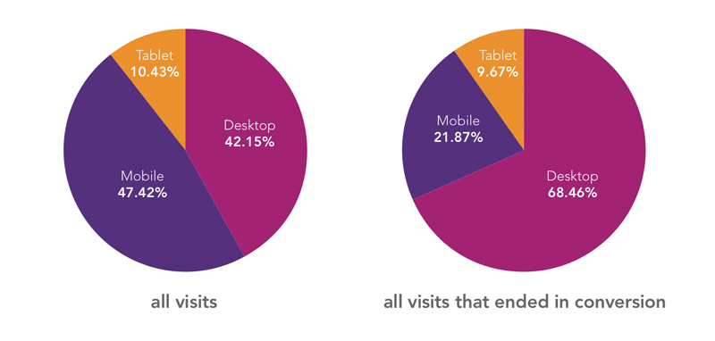 Possibly this is why that same report found that while mobile accounted for almost half of all traffic, it only accounted for 21.87% of the conversions.