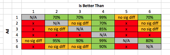 We can be pretty certain none of the ads are relatively terrible performers – at worst, they’re all broadly similar.